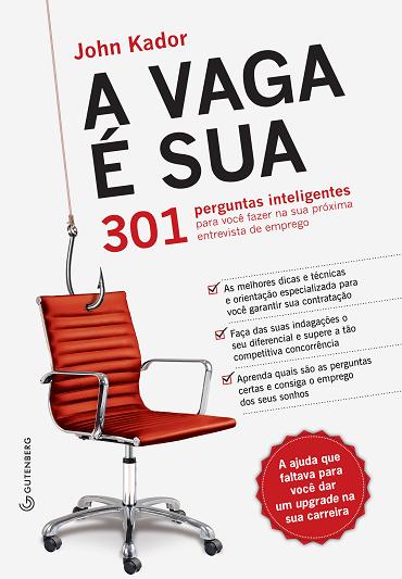O escritor e consultor de negócios John Kador contou com a participação de recrutadores, coaches, gerentes e especialistas em RH de várias das empresas que constam da lista da Fortune 500, ranking das maiores empresas dos Estados Unidos, para compor o livro "A vaga é sua – As 301 melhores perguntas para você fazer em uma entrevista de emprego", lançamento da Editora Gutenberg. Este guia prático de técnicas e dicas propõe uma inversão de papéis em um dos momentos mais importantes de uma seleção: a entrevista.