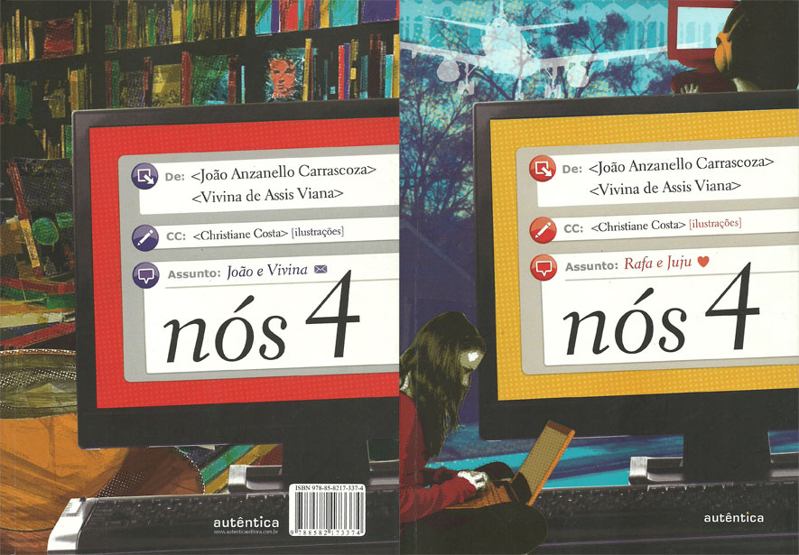 A internet é uma ferramenta brilhante que encurtou distâncias e permitiu às pessoas de todo o mundo a comunicação em tempo real. Este é o caso de Rafa e Juju, dois jovens apaixonados que trocam mensagens a distância. Os adolescentes são os protagonistas de um dos lados do romance juvenil nós 4, lançamento da Autêntica Editora, resultado da parceria dos amigos João Anzanello Carrascoza e Vivina de Assis Viana, que escreveram a obra totalmente por e-mail. O livro é composto por duas trocas de correspondência independentes (porém ligadas) entre dois pares de amigos.