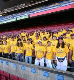 Como parte da premiação, dois estudantes e um professor de cada escola viajaram à Espanha, onde conheceram cidades como Barcelona e Madri (na foto, o grupo visita o estádio do Barcelona).
