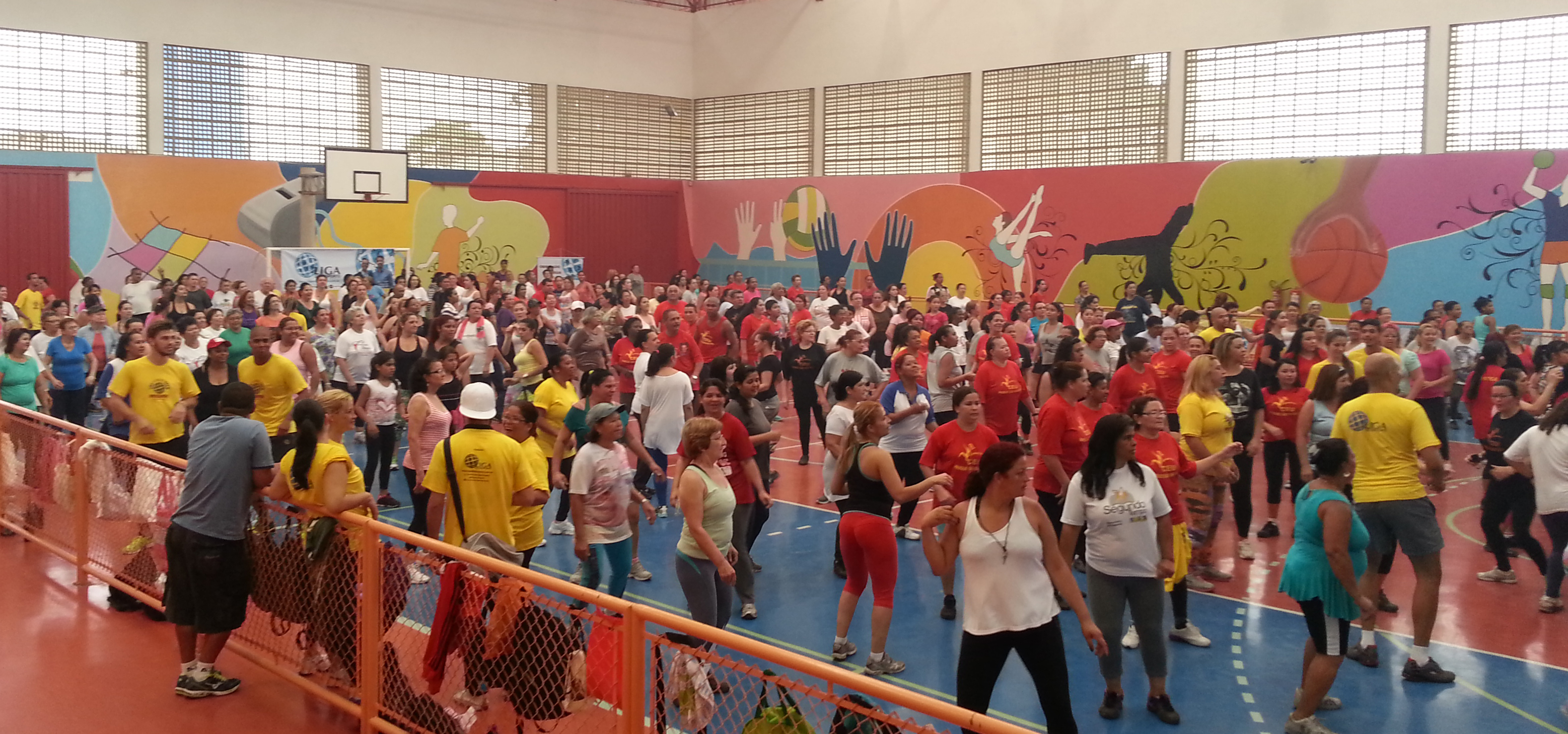 Mais de 550 pessoas, de jovens a septuagenários, participaram da 2ª edição do Liga Fitness Show, atividade promovida pela Liga do Desporto, que se constitui numa aula festiva de ginástica coletiva, realizada no sábado, 26 de outubro, no CEU Parque São Miguel. Foram quatro horas de muita música, energia e diversão. A aprovação foi unânime: além de agradável, fazer ginástica tem ajudado muitas pessoas a melhorar a saúde.